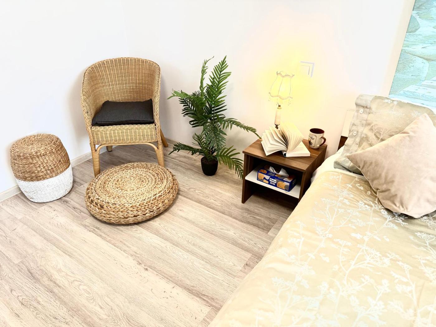 One-Bedroom Apartment. This apartment includes 1 living room, 1 separate bedroom and 1 bathroom with a bath and free toiletries. In the fully equipped kitchen, guests will find a stovetop, a refrigerator, kitchenware and an oven. The air-conditioned apartment offers a flat-screen TV with cable channels, a washing machine, soundproof walls, a tea and coffee maker as well as garden views. The unit has 2 beds.