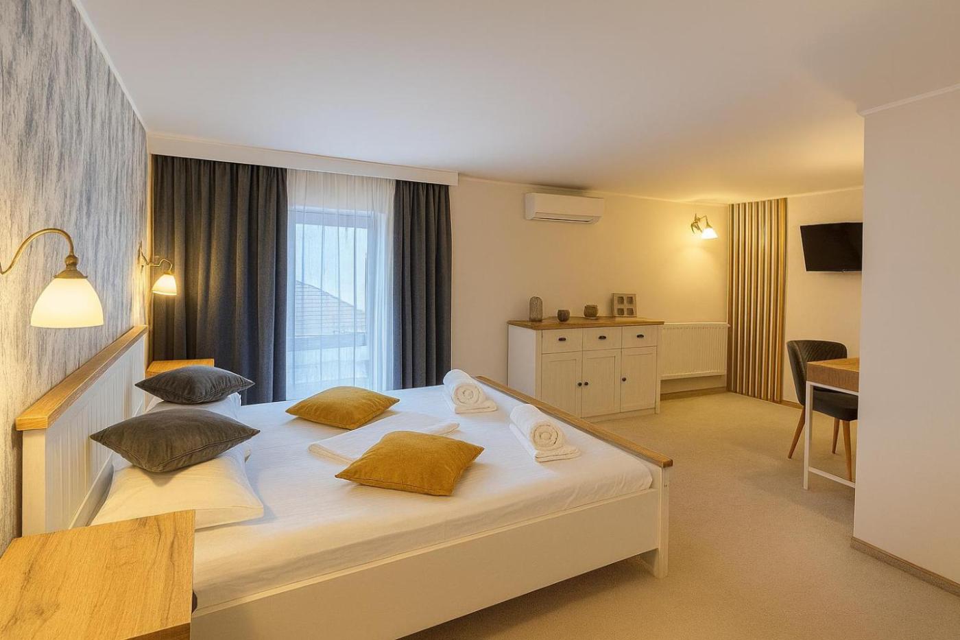 Large Double Room. The double room provides air conditioning, soundproof walls, as well as a private bathroom featuring a walk-in shower and a hairdryer. The double room features a flat-screen TV with cable channels, a wardrobe, an electric kettle and heating. The unit offers 1 bed.