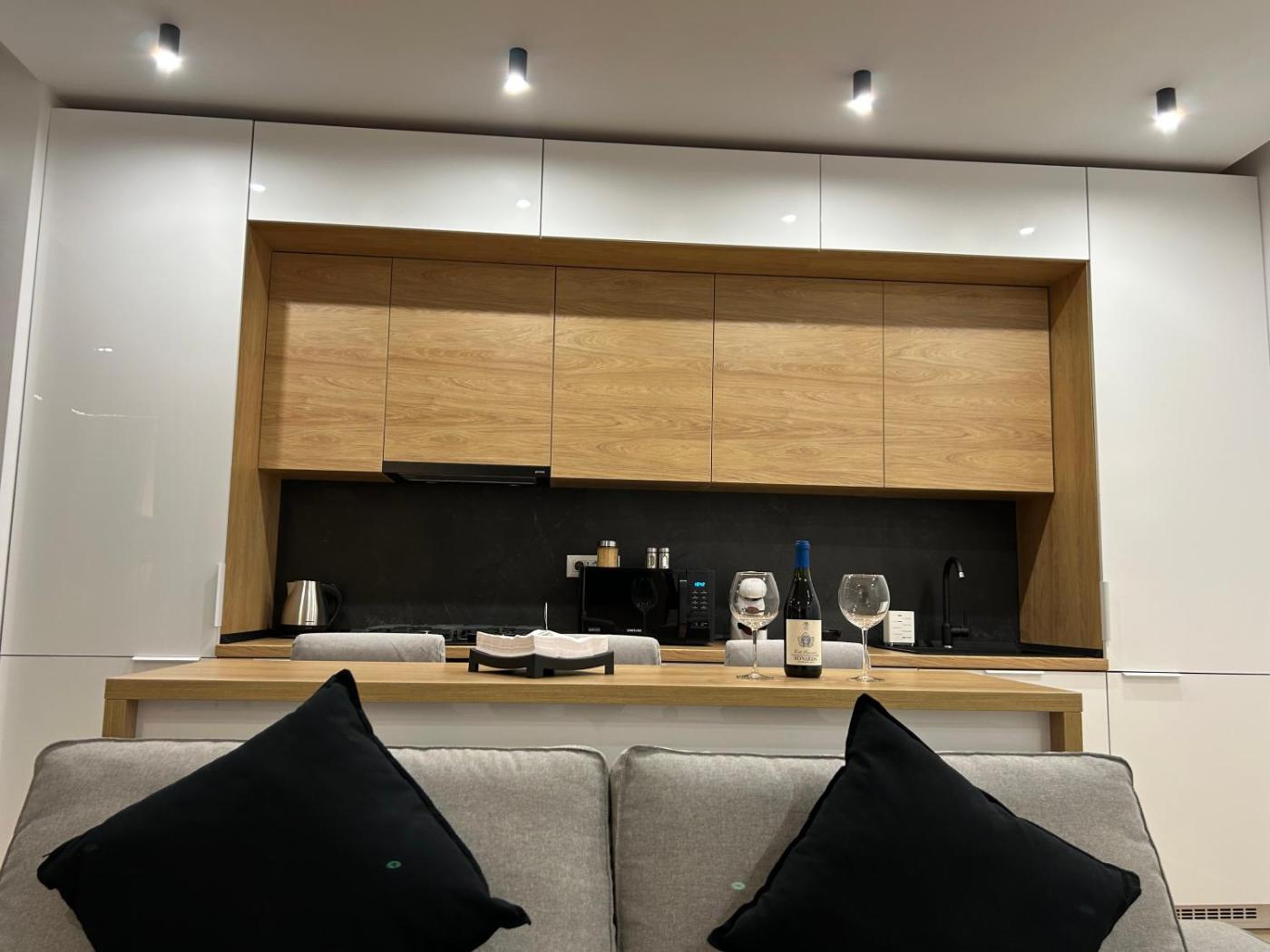 One-Bedroom Apartment. The air-conditioned apartment has 1 bedroom and 1 bathroom with a shower and a hairdryer. In the well-fitted kitchen, guests will find a stovetop, a refrigerator, kitchenware and an oven. Boasting a terrace with city views, this apartment also offers a washing machine and a flat-screen TV. The unit has 1 bed.