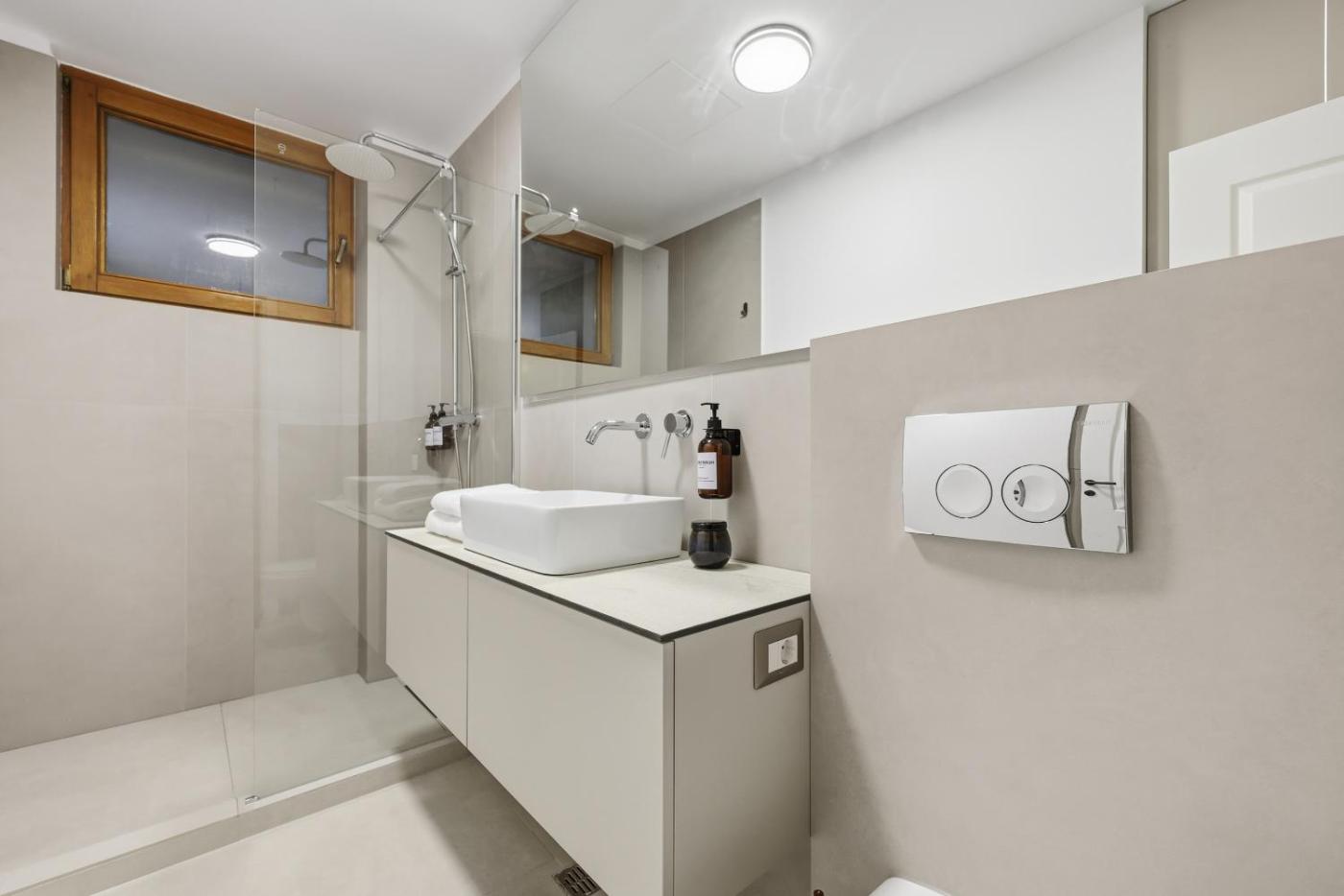 Two-Bedroom Apartment. Featuring a private entrance, this air-conditioned apartment is comprised of 1 living room, 2 separate bedrooms and 1 bathroom with a walk-in shower and a hairdryer. Guests can make meals in the kitchen that is fitted with a stovetop, a refrigerator, kitchenware and a microwave. The apartment offers a flat-screen TV with cable channels, a washing machine, a tea and coffee maker, a seating area as well as city views. The unit offers 3 beds.