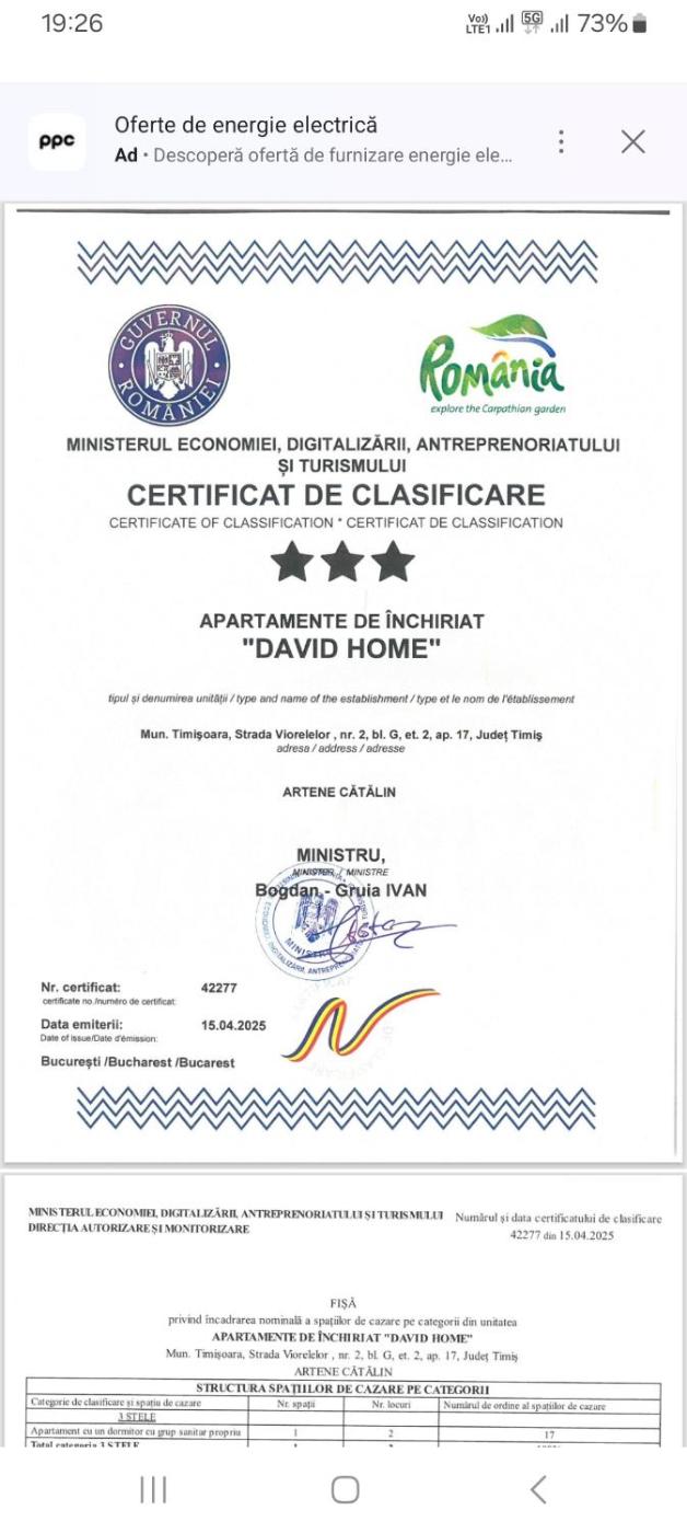 Located in Giroc, the recently renovated David Home provides accommodation 5.6 km from Huniade Castle and 5.7 km from Timișoara Orthodox Cathedral. This property offers access to a balcony, free private parking and free WiFi. The property is non-smoking and is situated 6.5 km from Theresia Bastion.